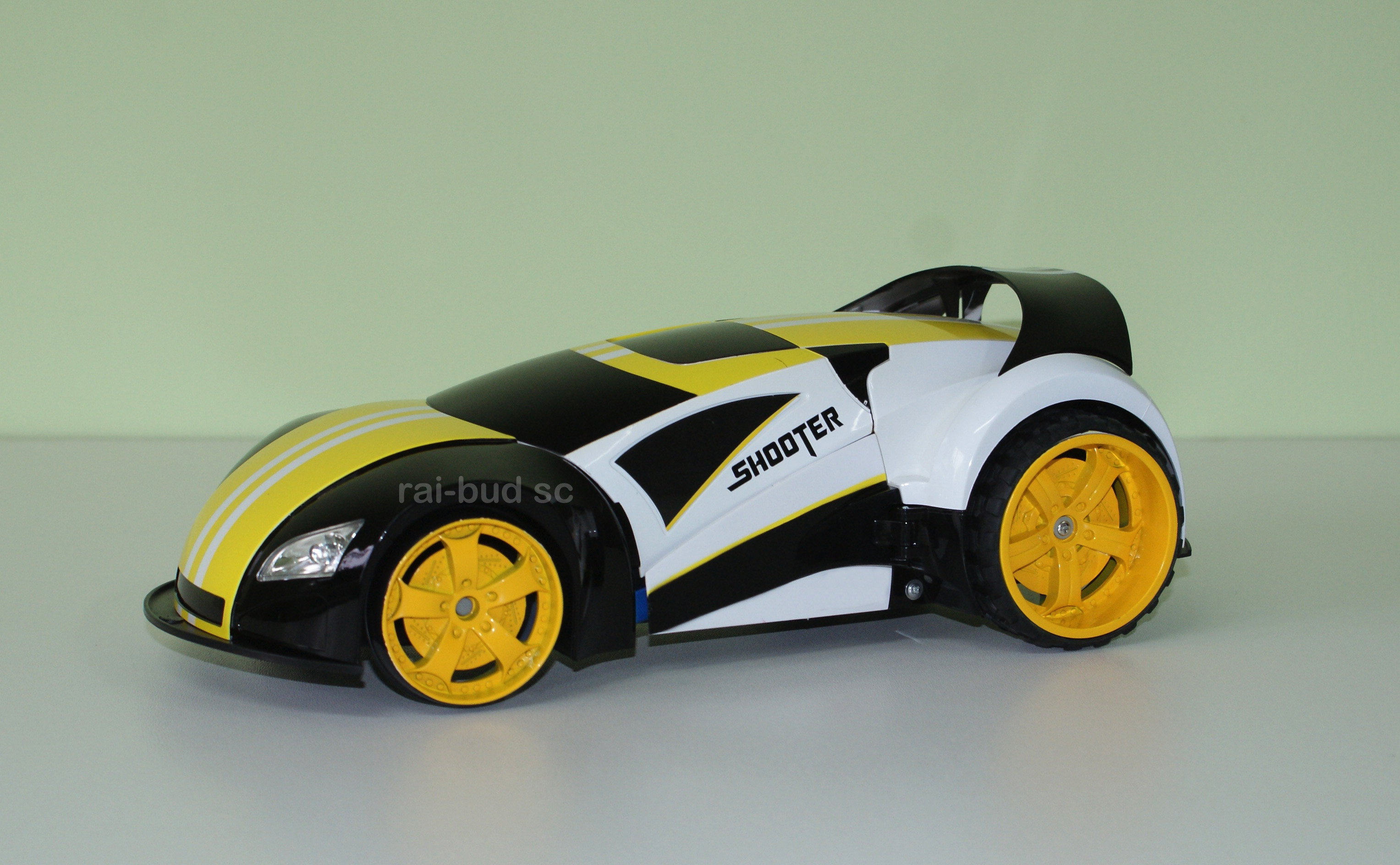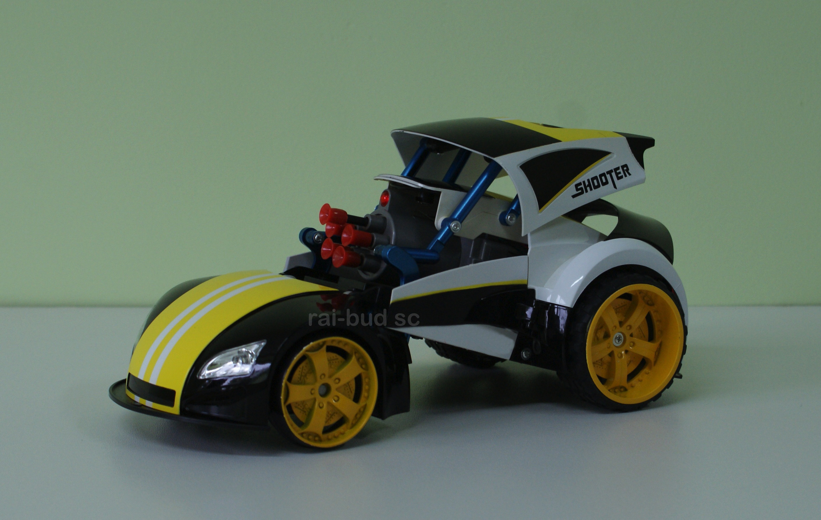 Zdalnie sterowane auto, które przy pomocy pilota można transformować w wyrzutnie rakiet. Bezpieczne strzałki z gumową końcówką lecą na około 2,5 - 3 metry.