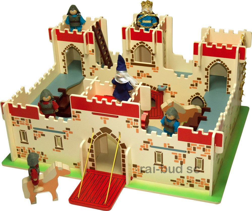 Historię Króla Artura i Rycerzy Okrągłego Stołu znają chyba wszyscy. Drewniany zamek Camelot kryje mnóstwo tajemnic i magii. Tajemne przejścia , lochy i zwodzony most dostarczą dzieciom niezapomnianych wrazeń. To wspaniałe pole do wyobraźni! Zestaw zawiera zamek, 6 pięknie wykonanych figurek, 2 konie, działający most zwodzony.