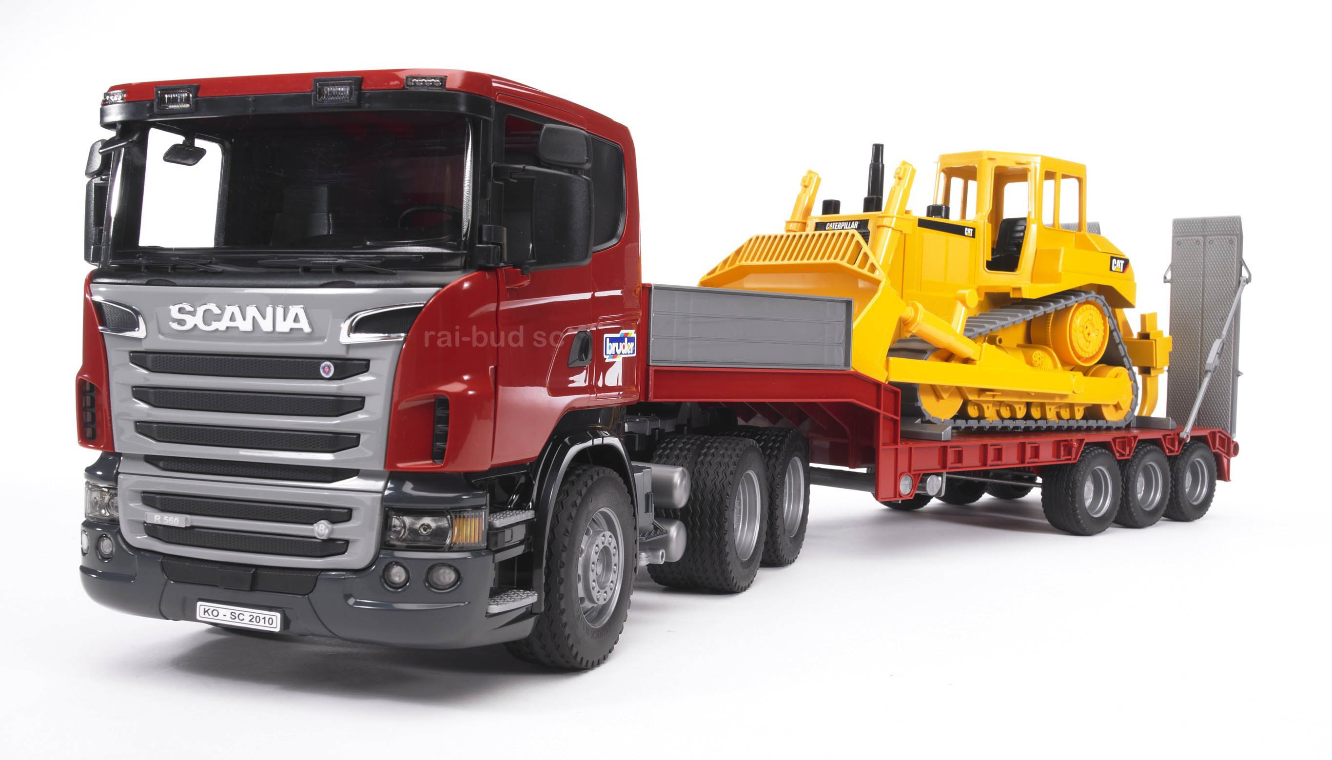 Zawartość opakowania: SCANIA Z NACZEPĄ I ZE SPYCHARKĄ CATERPILLAR