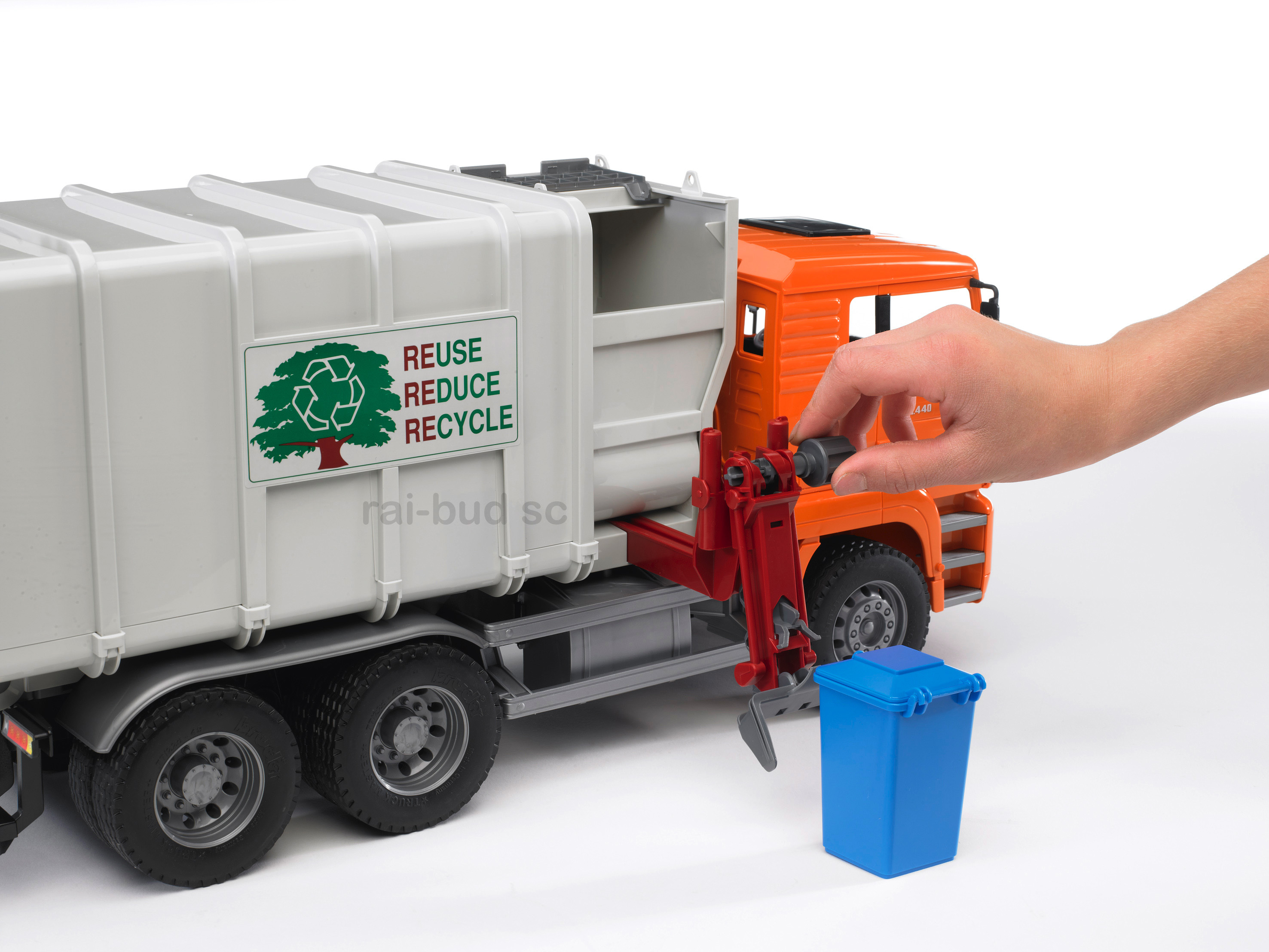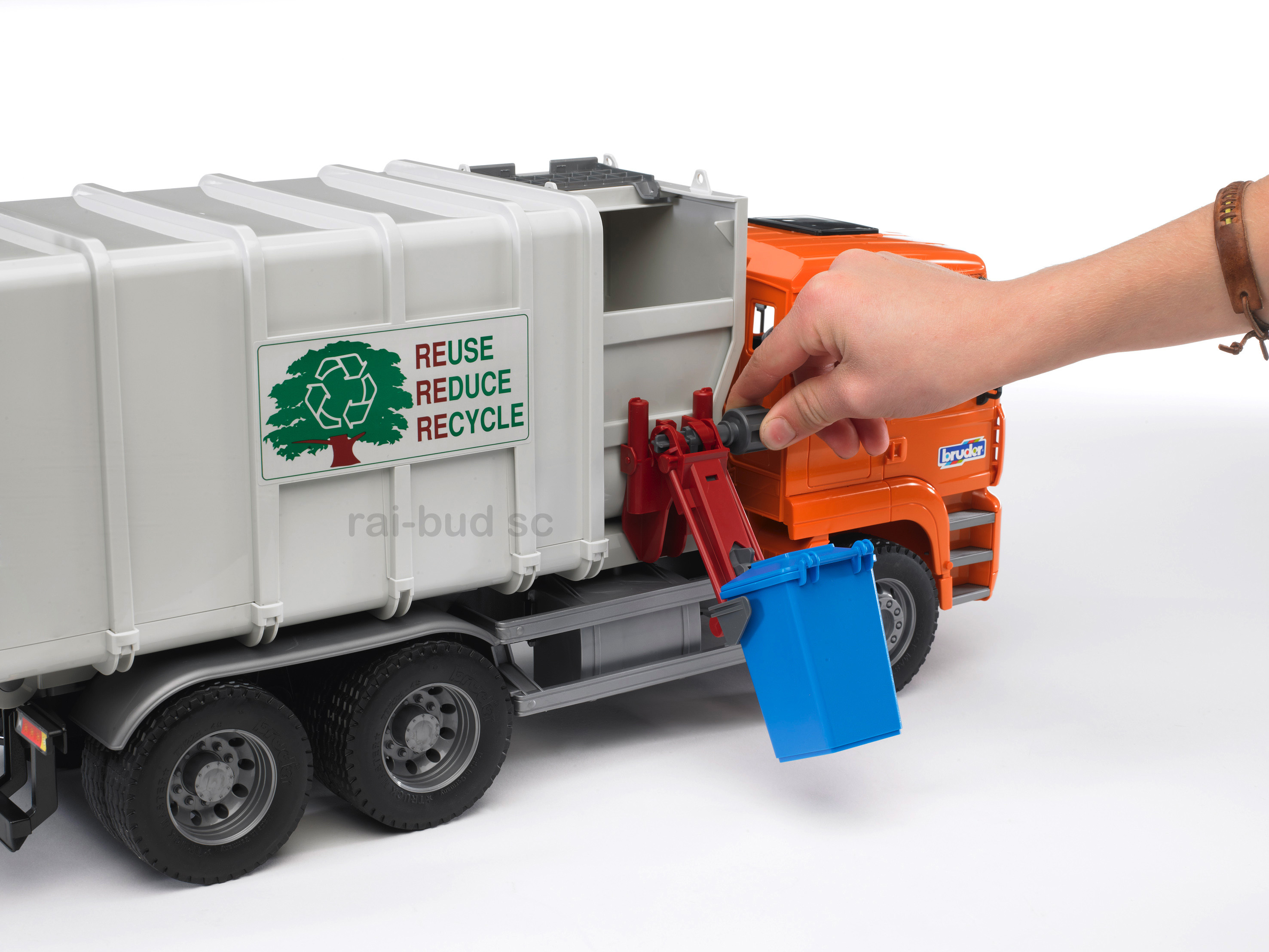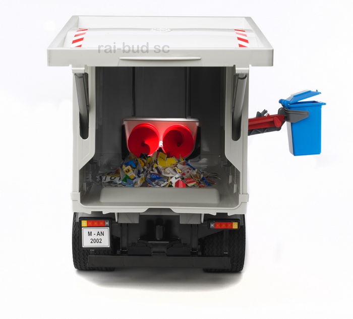 Zawartość opakowania: ŚMIECIARKA MAN Z POJEMNIKAMI NA ŚMIECI