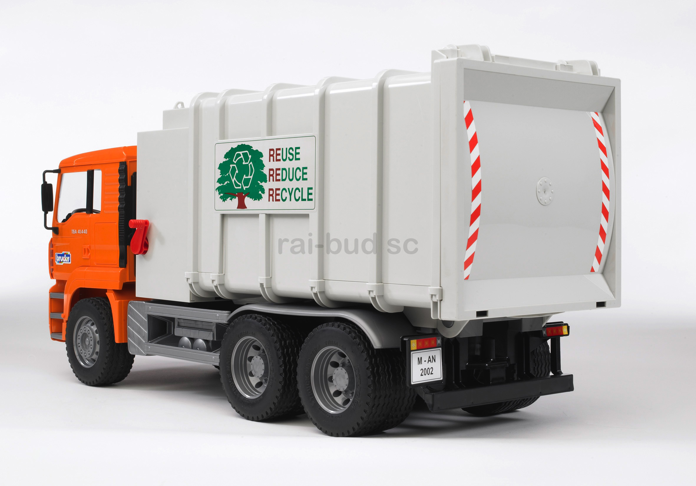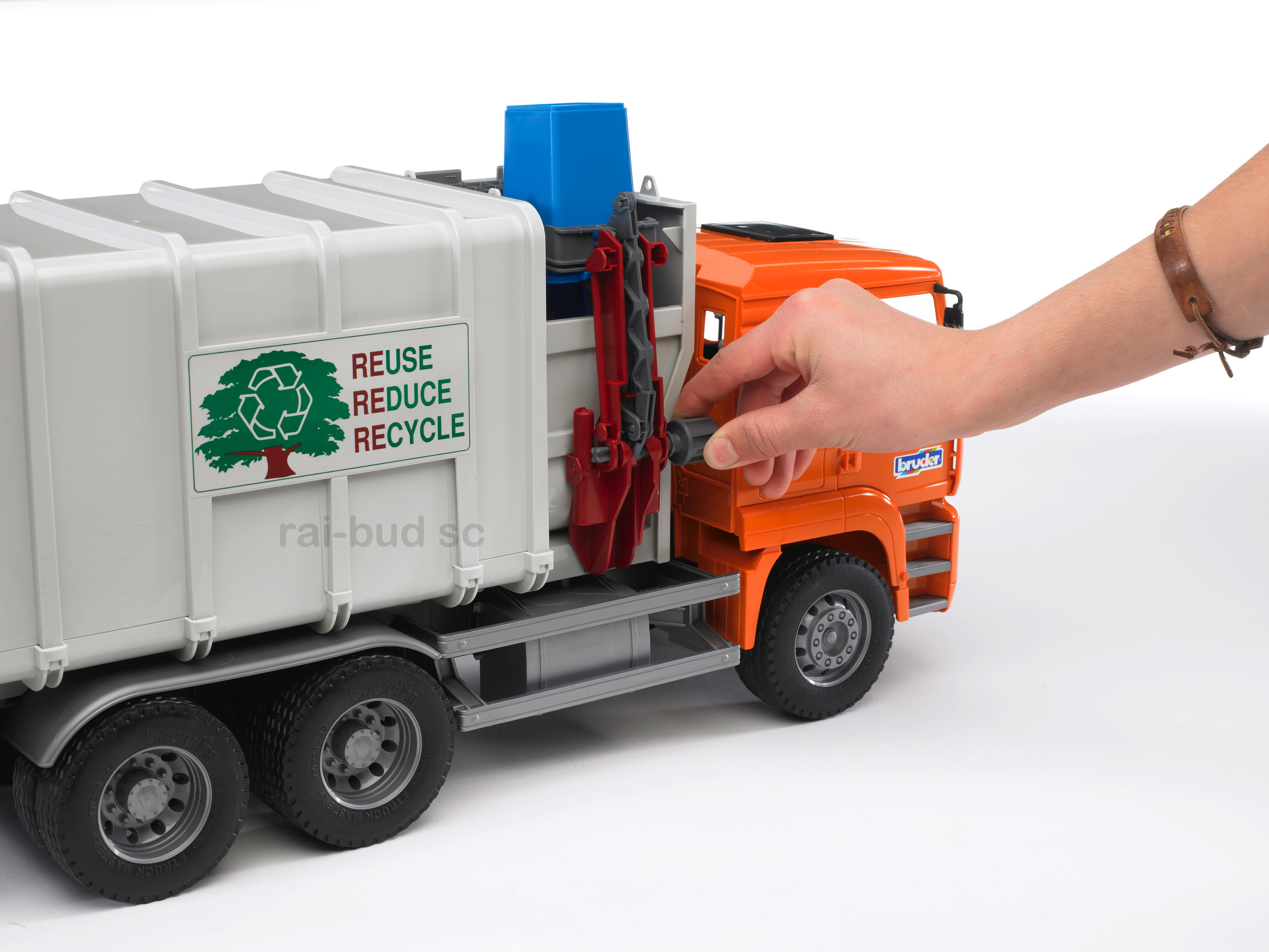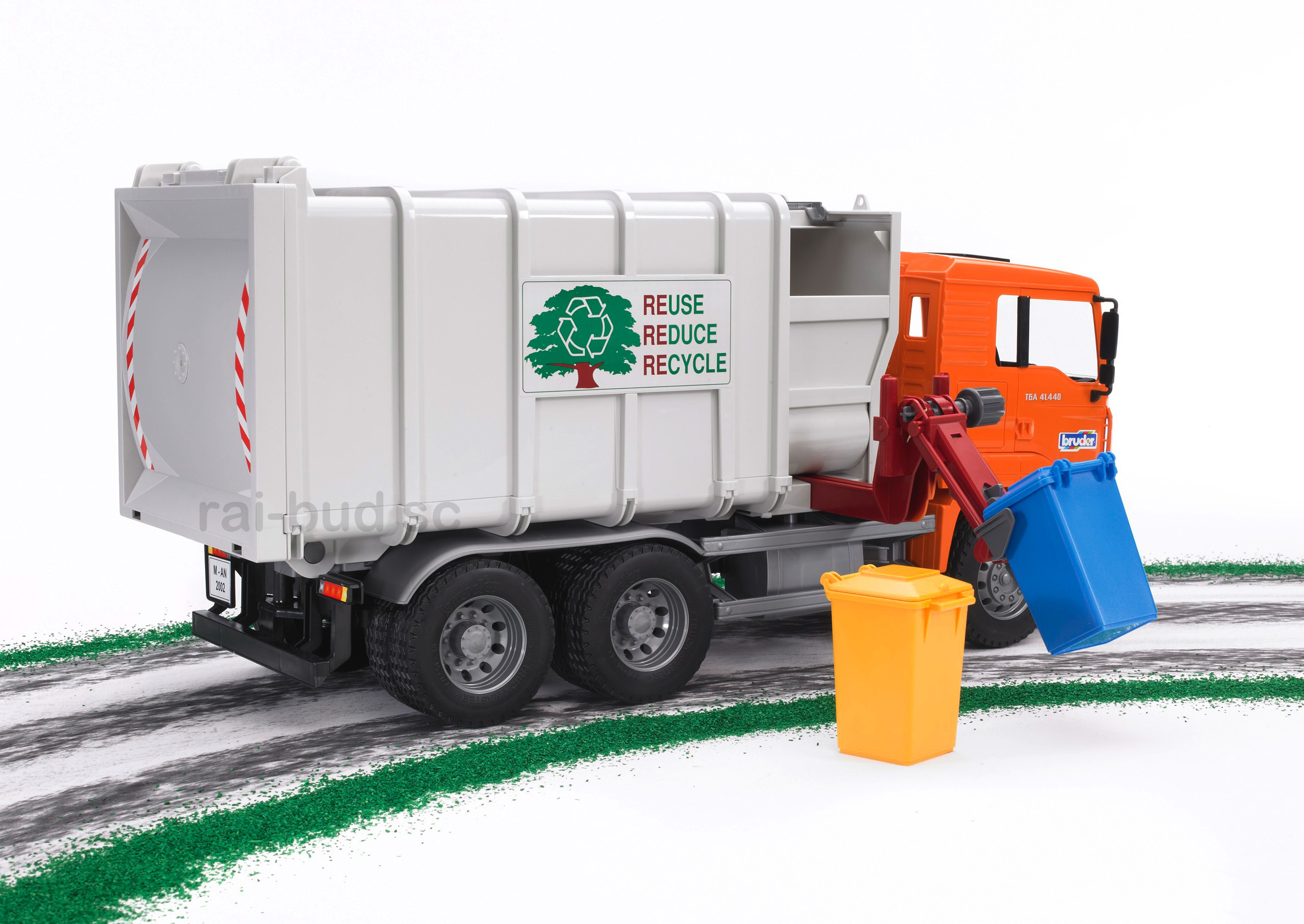 Zawartość opakowania: ŚMIECIARKA MAN Z POJEMNIKAMI NA ŚMIECI